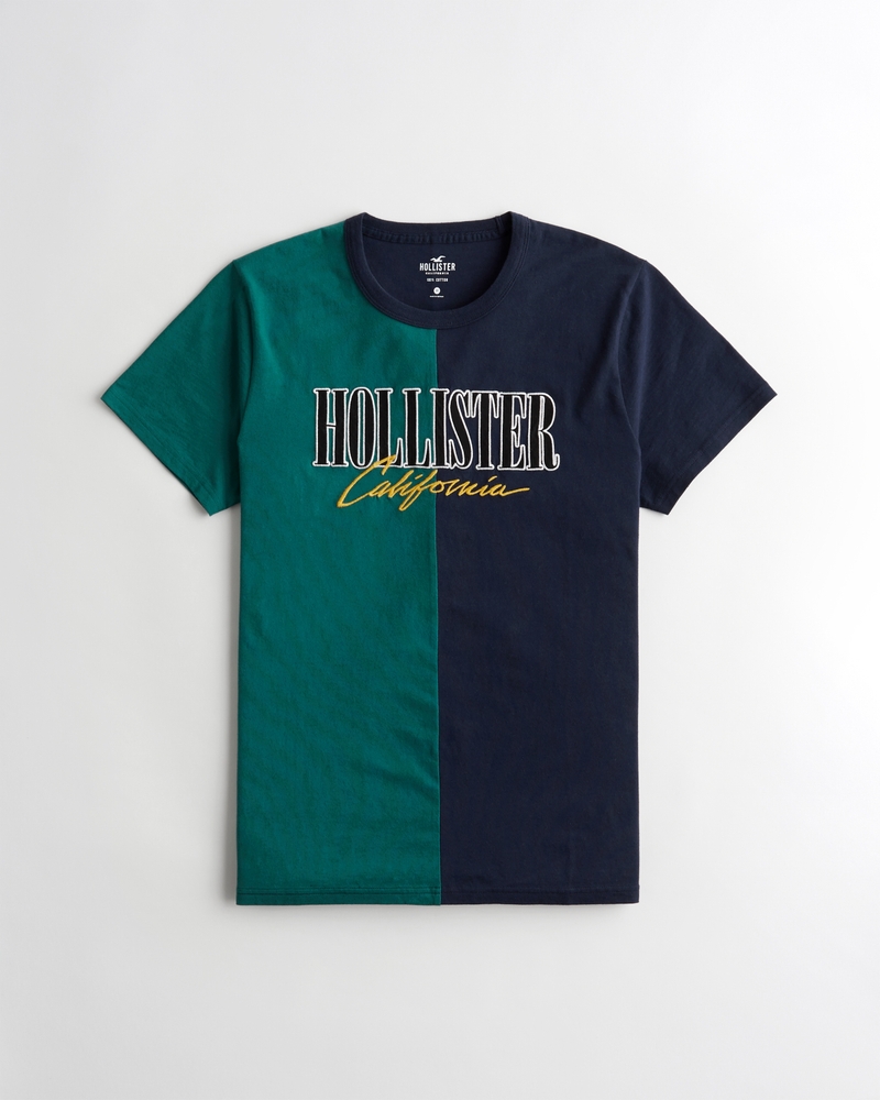 Guys Spliced Embroidered Logo Graphic Tee Guys Tops Hollisterco Com